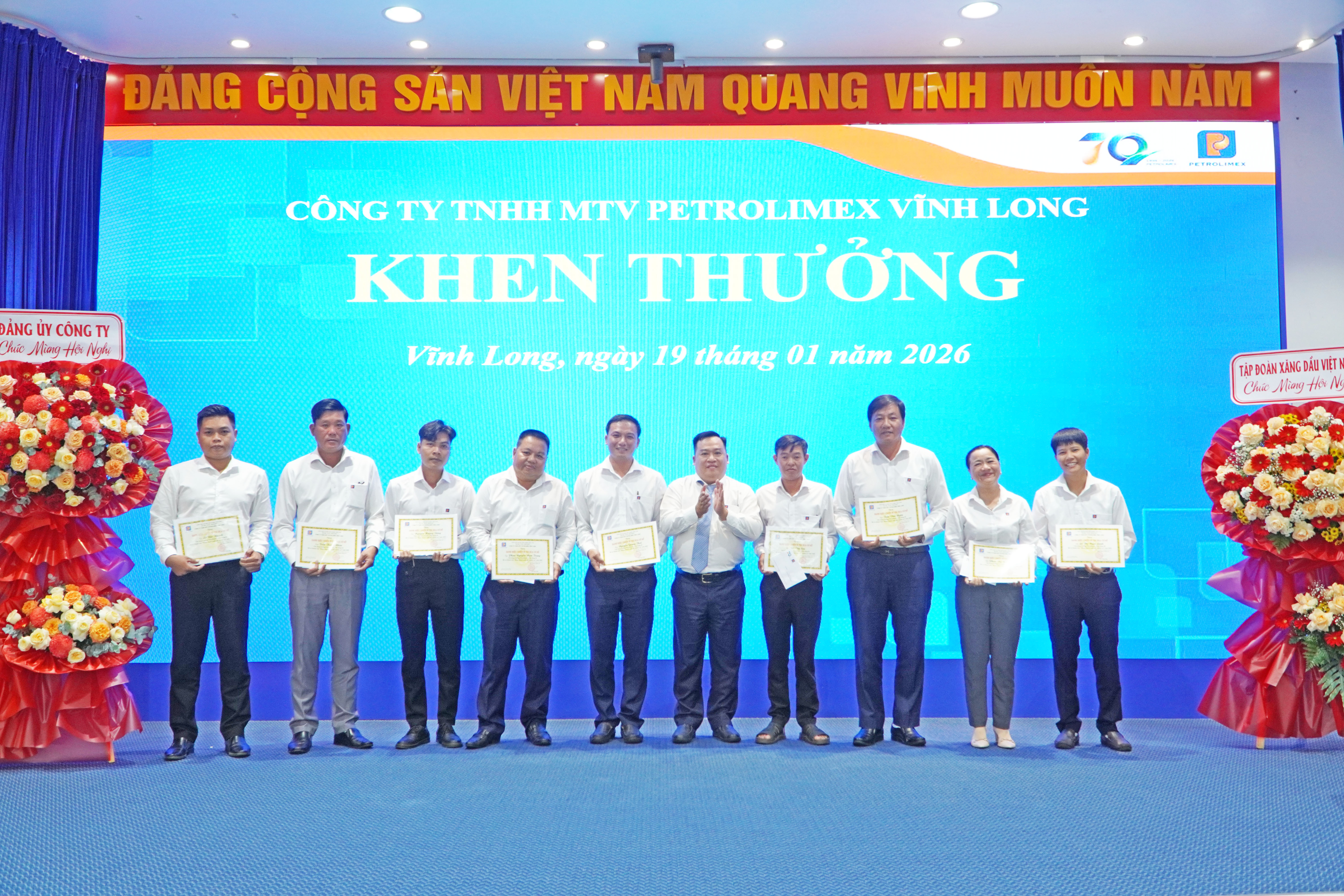 Nhân dịp này, Petrolimex Vĩnh Long đã khen thưởng các tập thể, cá nhân có thành tích xuất sắc trong kinh doanh năm 2025.